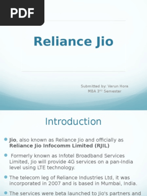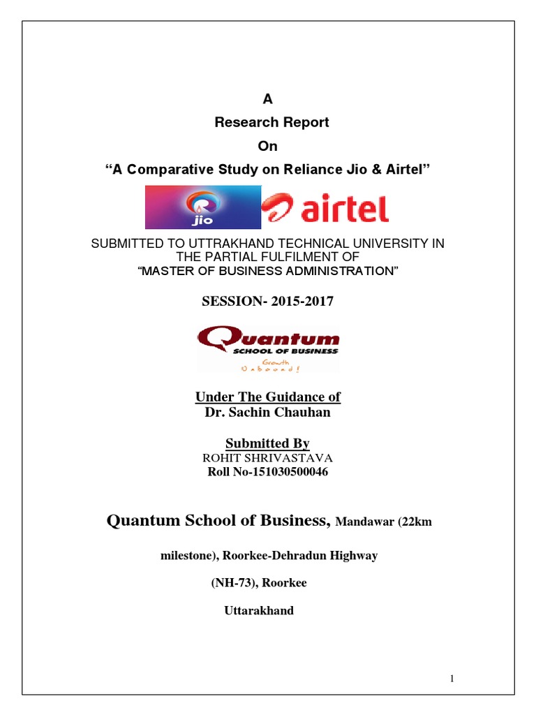 Project Report On Jio Vs Airtel Research Design Information And Communications Technology - Jio is the another name of reliance jio infocomm limited, as it is known today as a mobile network service based on lte technology and owned by reliance industries limited.